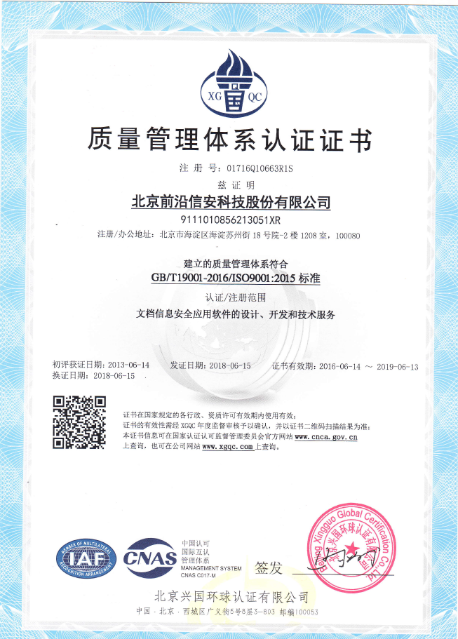 北京软件和信息服务业协会”软件产品证书 “--前沿风雷V6.0